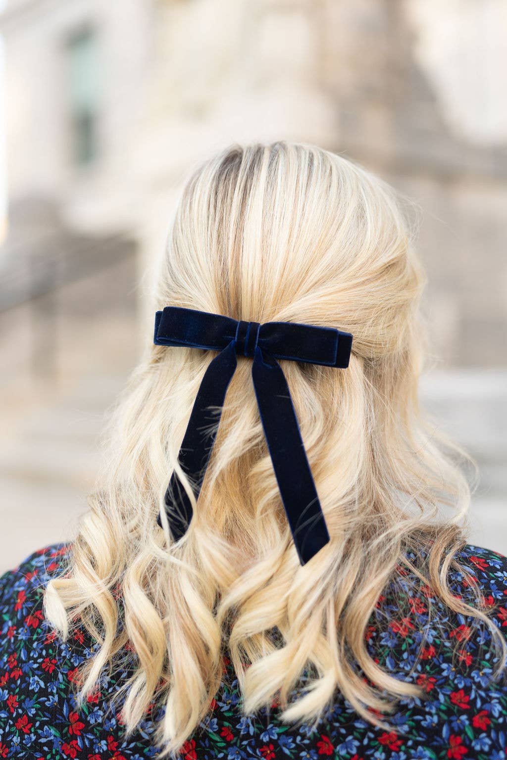 The Alice Short Bow is a "stacked" delicate bow featuring beautiful ribbon tails. Each bow is made with soft, luxurious velvet ribbon! Dimensions The Alice Short Bow measures approximately 5.25” wide and tails are approximated 5.25” long from top of bow to longest tip. This bow is secured on a 3" barrette. *