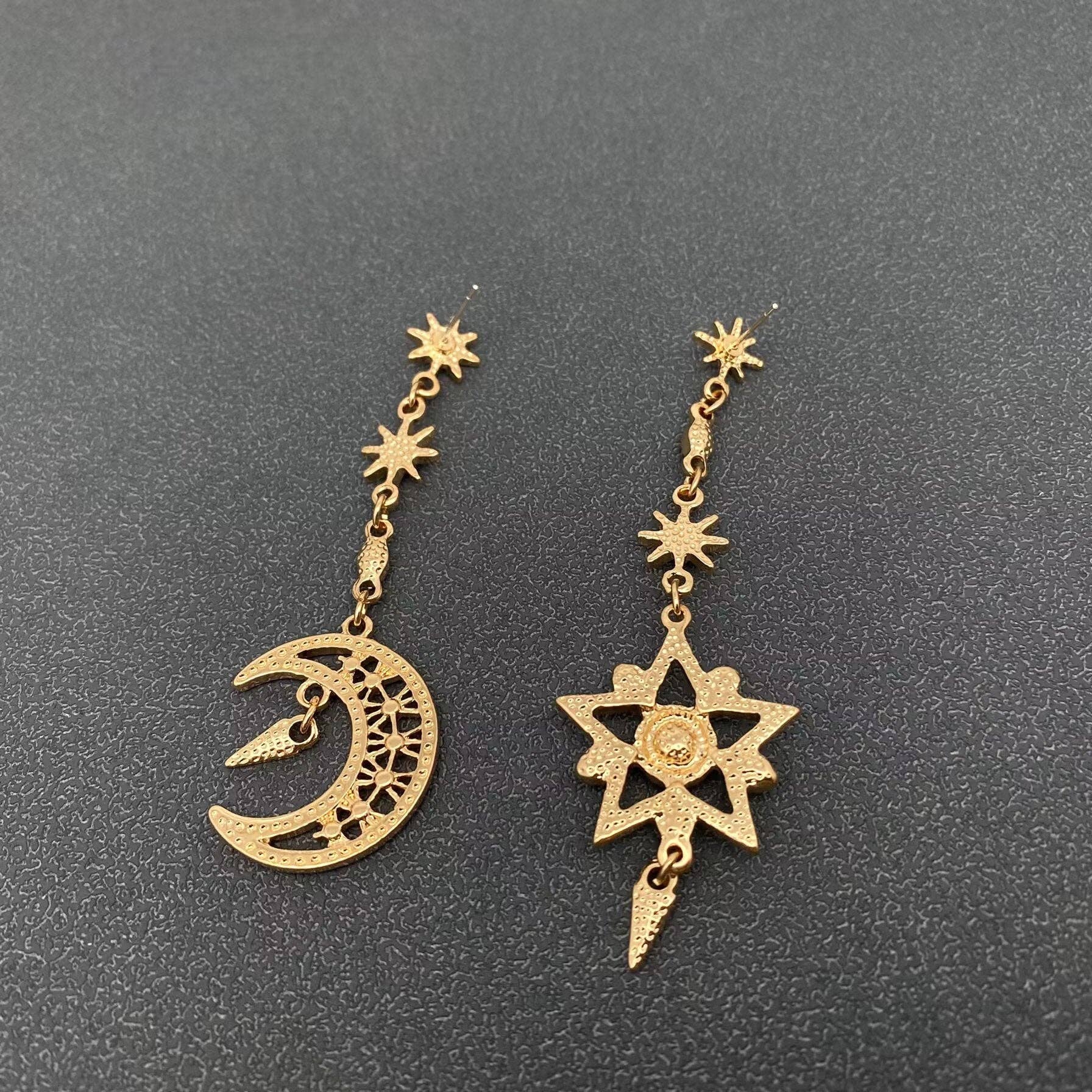 Bring some celestial charm to your wardrobe with our Star Moon Asymmetric dangle Earrings. The asymmetrical design featuring a moon and star will add a touch of earthy vibes to any outfit. A sweet addition to any jewelry collection.