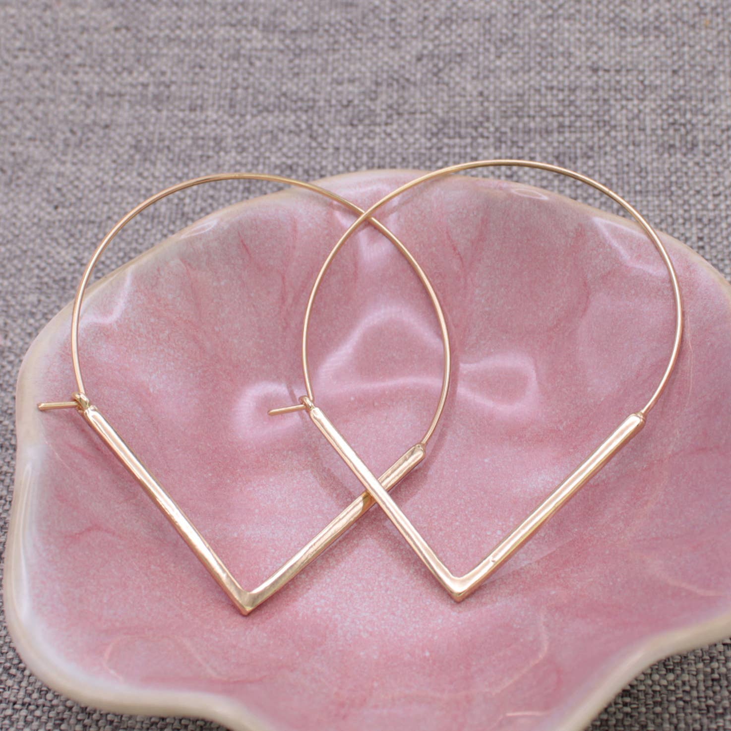 Sharpen your style with these V shaped gold hoop earrings. These pointed gold hoop earrings are here to elevate your look with a bold, geometric edge. Featuring sleek lines and a modern silhouette, they’re perfect for adding a little pointed sass to your outfit. Whether casual or chic, these hoops make sure you’re always on point! • Made in China • Lightweight pointed gold hoops • Materials: Gold Tone Metal • Measurements: 2 5/8 x 2"